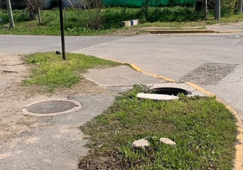 En un sector de Villa Elvira alertaron por una esquina donde falta una tapa en la boca de alcantarilla.