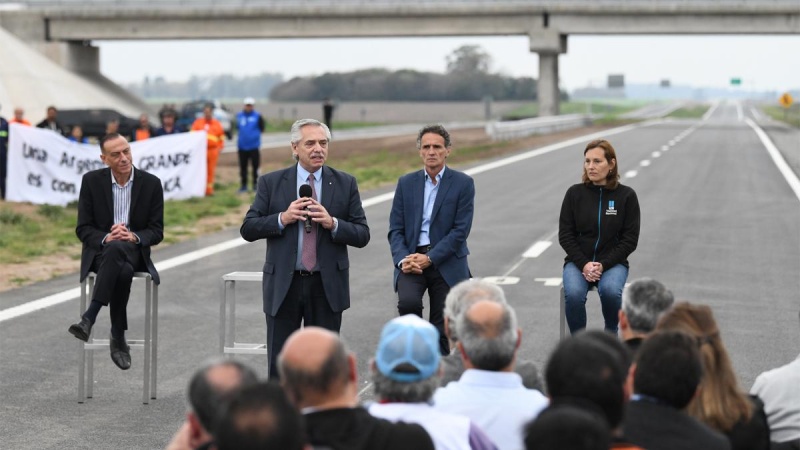 El presidente Alberto Fernández llamó este jueves "a la reflexión a todos los argentinos" al manifestar que el país "vuelve a vivir un dilema que siempre tuvo, si es para todos o para algunos". Fue al inaugurar la Autopista de la Ruta Nacional 8 que une las localidades bonaerenses de Pilar y Pergamino, junto al ministro de Obras Publicas de la Nación, Gabriel Katopodis, el Administrador General de Vialidad Nacional, Gustavo Arrieta, y la Jefa de Obras de Vialidad, Eliana Carluccio.