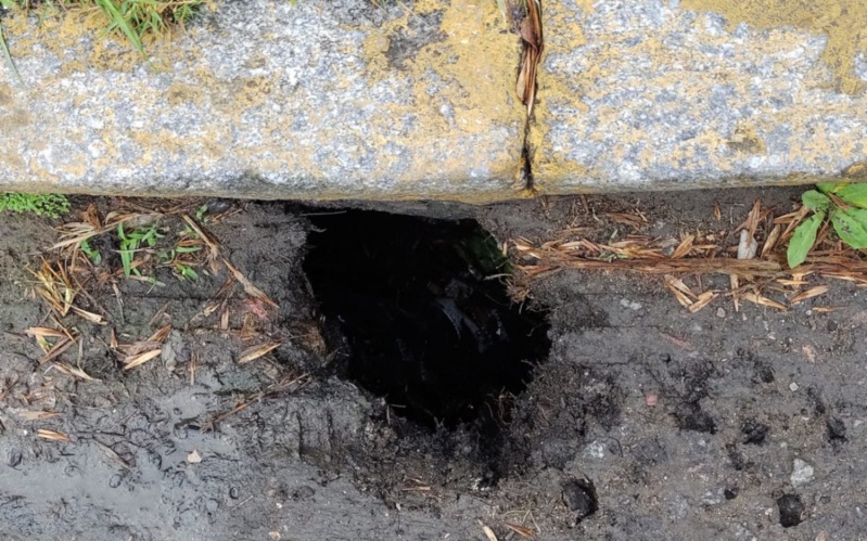 Vecinos expusieron su malestar ante un gran pozo que se encuentra al costado de una calle ubicado en 14 y 49 cerca de uno de los cordones de la vereda.