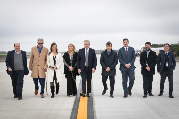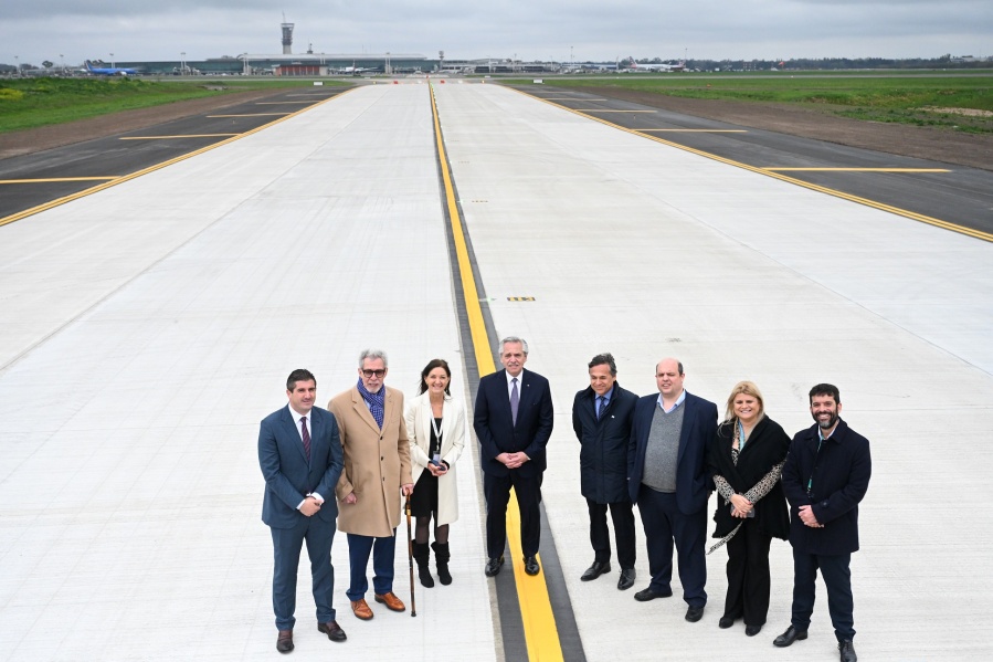 El presidente Alberto Fernández encabezó este mediodía, junto al ministro de Transporte, Diego Giuliano, la inauguración de la nueva calle de rodaje del aeropuerto de Ezeiza, que duplica la capacidad operativa del aeropuerto, fortalece la seguridad y evita demoras, ya que optimiza los tiempos de maniobra de los aviones.