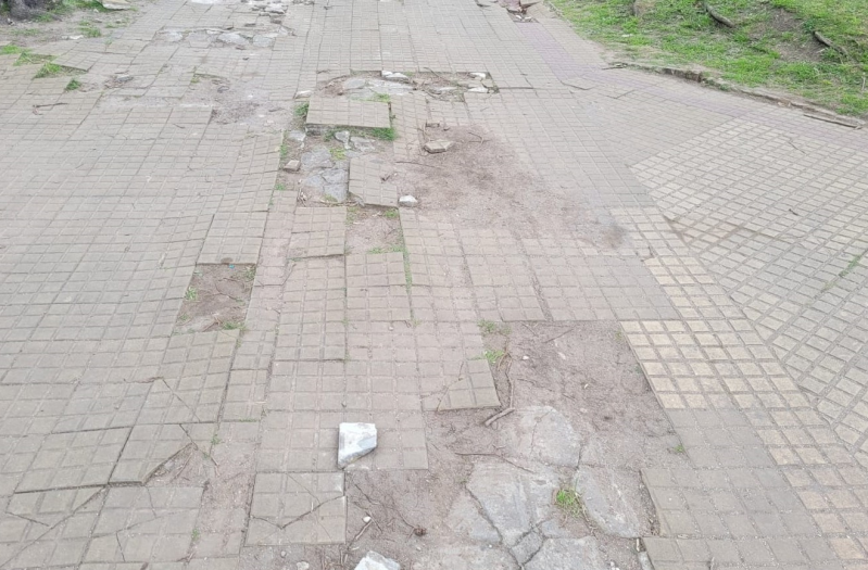 Vecinos de Plaza Olazábal se quejaron por el mal estado de las veredas sobre avenida 13.
