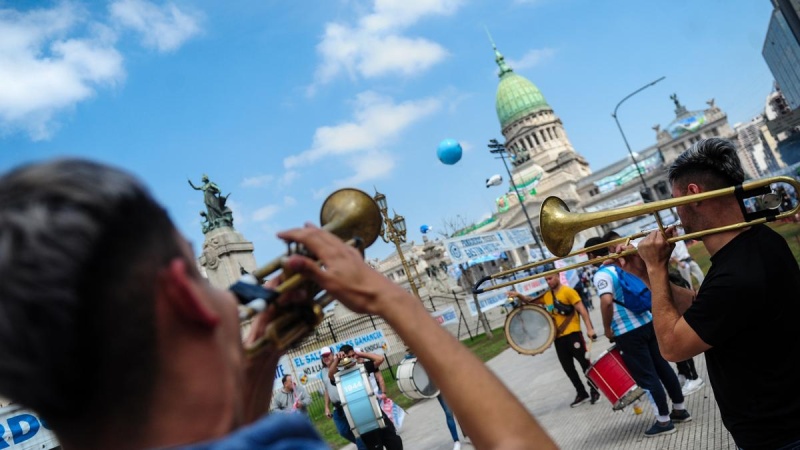La CGT, las dos CTA y movimientos sociales se movilizaron hacia la Plaza del Congreso para celebrar la sanción de la ley que modifica el impuesto a las Ganancias y elimina la cuarta categoría del tributo, y para expresar su apoyo a las últimas medidas económicas tomadas por el Gobierno, en un acto en el que el ministro de Economía y candidato a presidente de Unión por la Patria (UxP), Sergio Massa, será el único orador.