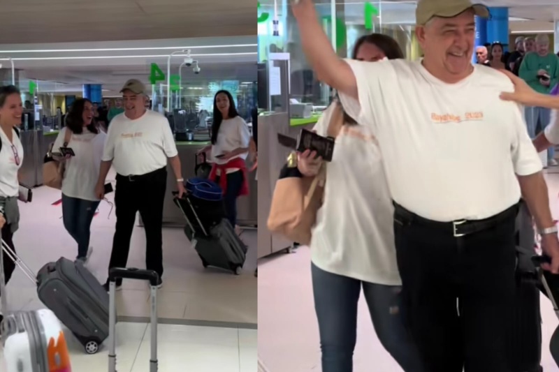 Así lo compartió @guadarainero en su cuenta de Tik Tok quien detalló: “Mi abuelo el más tierno”, mientras lo filma preparado para viajar con sus familiares, los cuales tenían todos una remera que decía “Los 80 de Robin” en la espalda junto a una foto del nono.