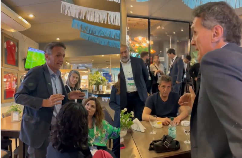 "Antes de arrancar el debate Katopodis se puso el buzo de Scaloni y dio una arenga bajo la atenta mirada de todos, Massa incluido", escribió Rial en su cuenta de X (antes Twitter) al compartir las imágenes.