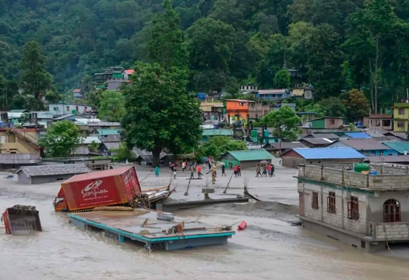 La crecida fue causada por el desbordamiento del lago Lhonak, situado en la base del glaciar en las cumbres nevadas que rodean al Kangchenjunga, la tercera montaña más alta del mundo.