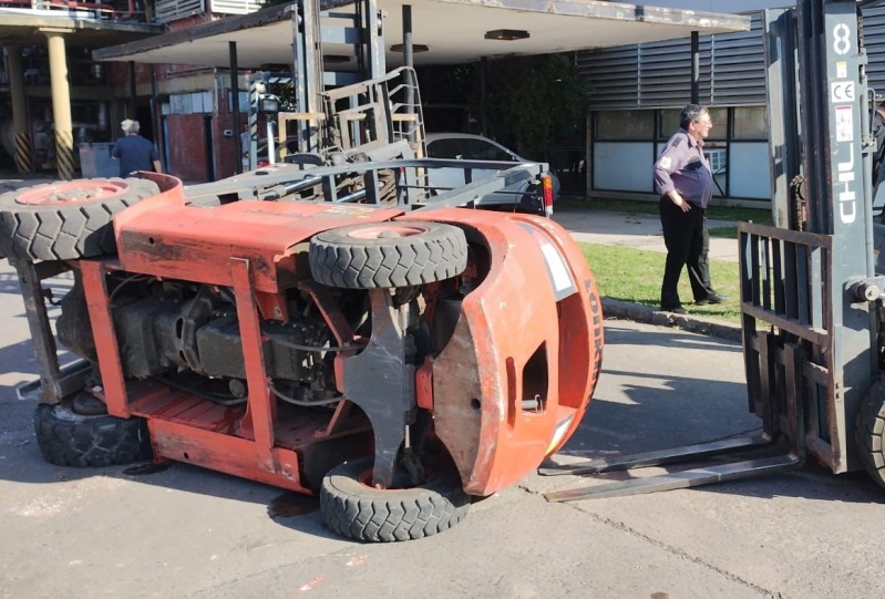 Según precisó un compañero, el operario intentó realizar una maniobra, la maquina se desestabilizó y terminó volcando.