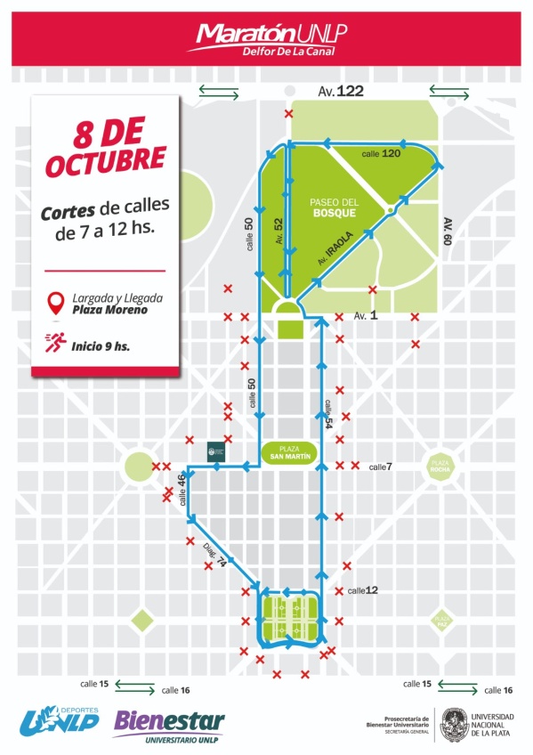 En el marco de la 18º edición de la tradicional Maratón “Delfor De la Canal”, una actividad solidaria organizada por la Universidad Nacional de La Plata (UNLP), el Municipio anunció cortes y desvíos al tránsito vehicular para este domingo.