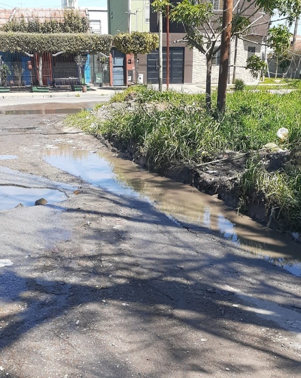 Frentistas de calle 59 y 146 expusieron una queja que ya lleva meses de reclamo. Una importante pérdida de agua genera un barrial en las calles, el cual aseguran “imposibilita el cruce de los niños a la escuela. La gente se cae, como también bicicletas y motos de delivery por el verdín que se forma”.