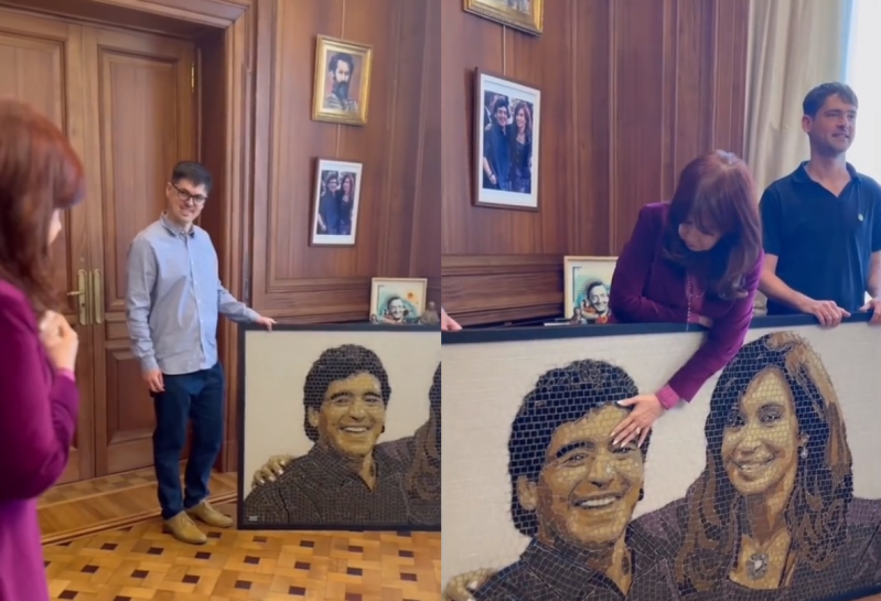 A través de un video que compartió en su cuenta de Tik Tok, Cristina Fernández de Kirchner mostró el cuadro de Maradona que recibió por parte de Lucas y Gastón Castagneto, de una foto de la vicepresidenta de la Nación junto al eterno 10.