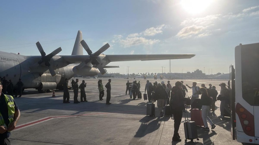 "Comenzó la evacuación de los argentinos que se encuentran en Israel. El primer grupo de argentinos y argentinas partió en el Hércules desde el aeropuerto de Tel Aviv hacia Roma para luego regresar a nuestro país", informó la mañana de este jueves la Cancillería en su cuenta de la plataforma X (ex Twitter).
