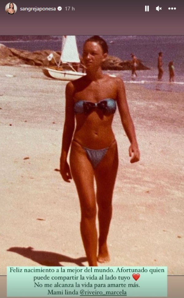 "Feliz nacimiento a la mejor del mundo. Afortunado quien puede compartir la vida al lado tuyo. No me alcanza la vida para amarte más. Mami linda", expresó la China Suárez junto a una postal retro de su madre luciendo una bikini cuando cuando era más joven.
