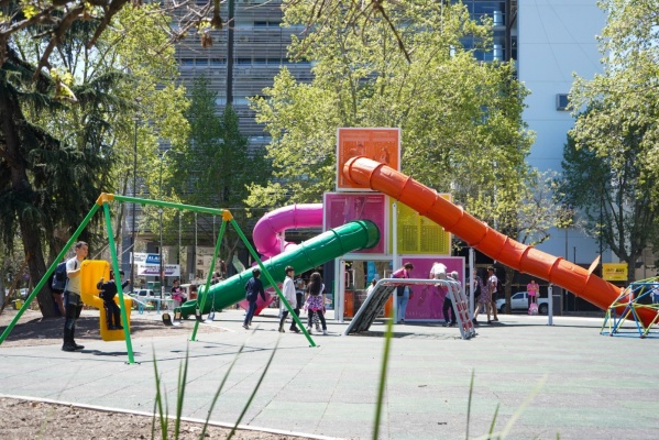 En la plaza central de la ciudad, la Comuna renovó los dos patios de juegos existentes: en el primero instaló el mangrullo central “Ceibo”, inspirado en la flor nacional, con toboganes, redes trepadoras, escaleras y sogas; y en el segundo, uno bajo la temática “Selva”, con toboganes y un panel Ta-Te-Ti.