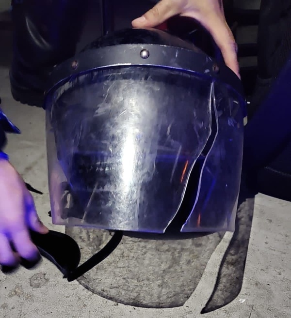 Finalmente, algunos frentistas del lugar comenzaron a atacar a los efectivos tirándole piedras para hacer que se retiren del lugar, por lo que los policías procedieron a ir contra la agresión mediante disparos con cartuchos antitumulto.