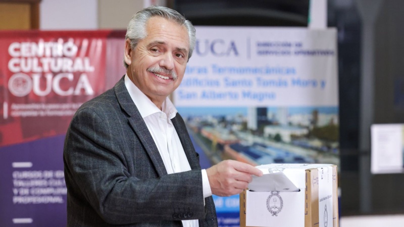 El mandatario votó en la Universidad Católica Argentina antes de las 10hs, en su última votación como Presidente de la Nación. Alberto Fernández llegó en auto y de manera inmediata ingresó en la UCA.