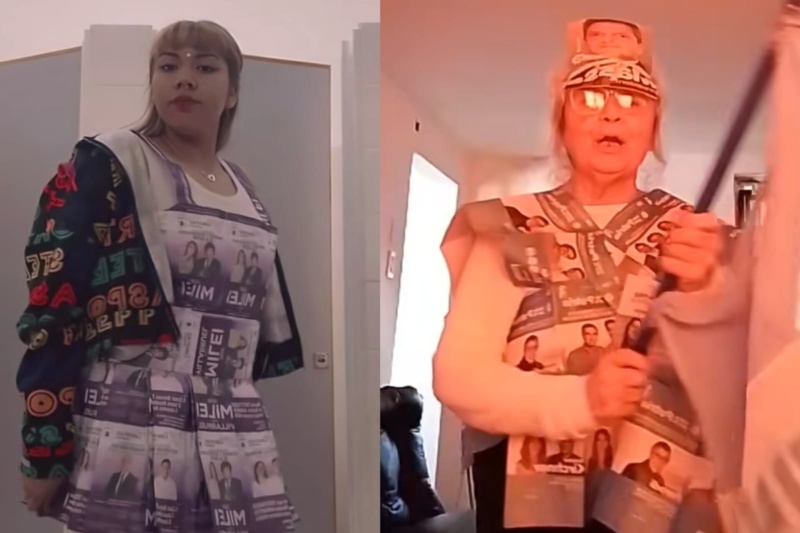 Mientras que en las seguidillas de clips más visualizados de los últimos días y relacionados con las Elecciones, se encuentra una joven que decide no cantar sino lucir su “vestido” realizado por quien compite con Sergio Massa, Javier Milei.