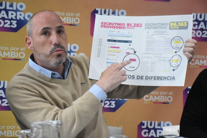Y afirmó: “Nuevamente, es confirmarles que en las 1.805 actas que tenemos en nuestro poder de los fiscales de Juntos por el Cambio, Julio Garro ganó la elección de La Plata. Por eso, queremos contarles por qué nosotros, cuando el domingo dimos la conferencia de prensa y hablamos en primer lugar por las mesas testigos, mencionábamos que Julio estaba unas milésimas arriba”.