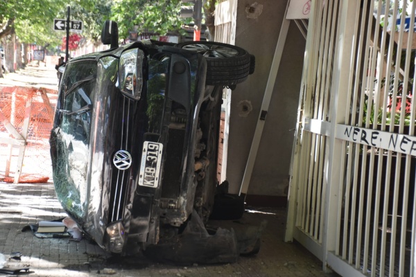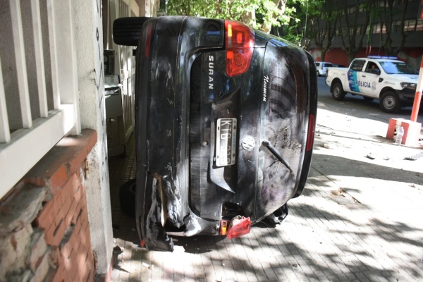 De acuerdo al reporte policial, todavía no están esclarecidas las causas del accidente. Lo que se produjo fue el vuelco de un vehículo VW SURAN, que impactó sobre el portón de un edificio.