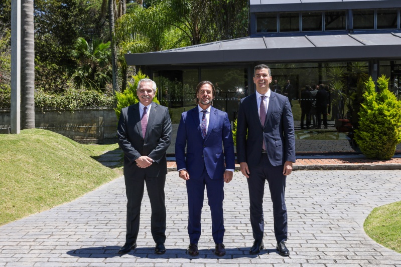 El presidente de la Nación, Alberto Fernández mantuvo un encuentro este mediodía en la residencia presidencial de Montevideo con sus pares de la República Oriental del Uruguay, Luis Lacalle Pou, y de la República de Paraguay, Santiago Peña, para avanzar en la organización de los partidos inaugurales del Mundial Centenario 2030, que se disputarán en estos tres países en conmemoración de la primera copa del mundo.
