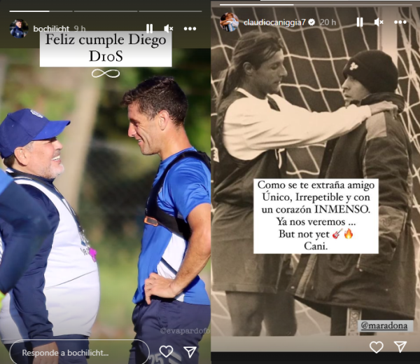 Uno de los que se acordó fue Sergio Goycochea, compañero en la Selección Argentina en la década del 90, que subió un sentido mensaje en sus redes sociales: "Amigo mío, feliz cumple, demás está decir lo que te extraño. Hay mil anécdotas para contar de la Selección, pero yo quiero recordarte con esa sonrisa que encantaba a todo el mundo. No te voy a olvidar nunca, Diego. Un abrazo grande al cielo". Claudio Paul Caniggia, otro de los grandes compinches del Diego en el combinado nacional, colgó también una foto de los dos en sus redes: "Cómo se te extraña amigo. Único, Irrepetible y con un corazón INMENSO. Ya nos veremos. But not yet (Pero no todavia). Cani".
