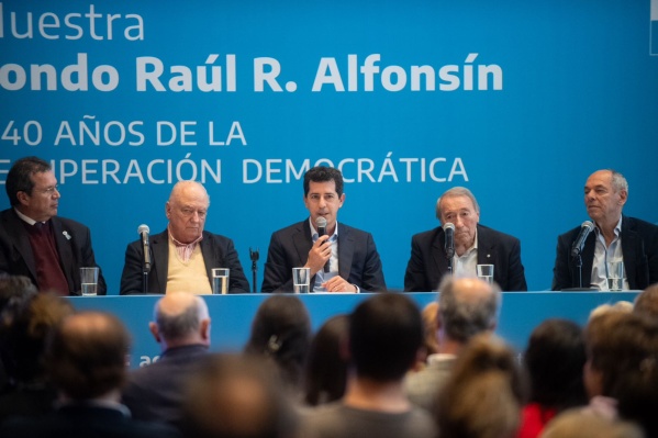 El ministro del Interior, Wado de Pedro, y el director general del Archivo General de la Nación (AGN), Pablo Fontdevila, inauguraron la muestra “A 40 años de la recuperación democrática” del Fondo Raúl Ricardo Alfonsín junto al ex vocero presidencial, José Ignacio López y el  exministro de Defensa, Horacio Jaunarena y familiares del fallecido ex presidente, de quien se conmemoran hoy también 40 años de su triunfo en las elecciones que derivaron en la recuperación democrática.