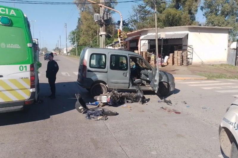 En un fin de semana marcado por la inseguridad vial en la región, donde este sábado murió un motociclista, se registró un fuerte choque en avenida 520 y 159 protagonizado por una moto y una camioneta.