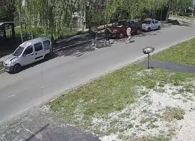 El primero de los malhechores se acercó a la camioneta, una Kangoo color gris y aflojó las tuercas.