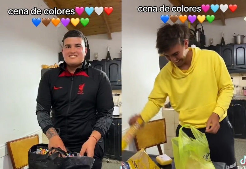 “Hola, yo soy ariel y me tocó el color verde” comienza diciendo el primer amigo de Valen, que acto seguido comienza a sacar toda la comida respetando el color que le asignaron. Luego le siguió Alejo con el marrón, Agustín con el beige, Lu con el azul, y así hasta completar varios colores.