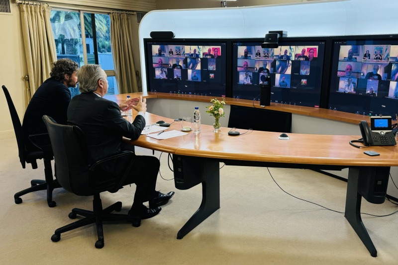 El presidente Alberto Fernández mantuvo una nueva reunión desde la Residencia de Olivos con familiares de las y los argentinos secuestrados por el Grupo Hamas, en el marco de la campaña global y de las acciones que lleva adelante el Gobierno nacional con el objetivo de que “sean liberados de manera incondicional e inmediata”.