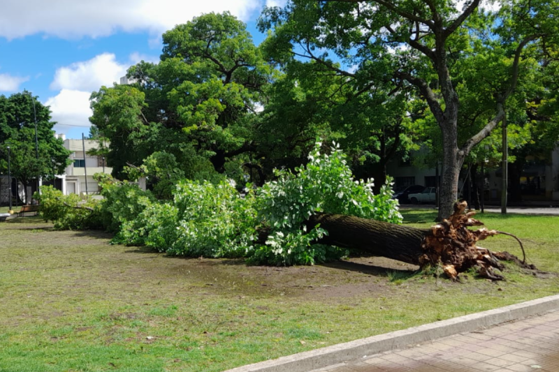 La fuerte tormenta que azotó la región dejó varias secuelas en diferentes puntos de la ciudad de La Plata. Ante la caída de un pino sobre el tendido eléctrico en Villa Elvira, se le suma la caída de un árbol de grandes dimensiones en plena Plaza España, ubicada en 66 y 7.