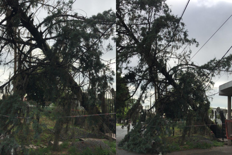 Luego de que una fuerte tormenta azotara la región durante la jornada de este viernes, vecinos de la zona de calle 78 entre 117 y 118, en la localidad de Villa Elvira, reportaron que un pino se cayó y derribó el tendido eléctrico.