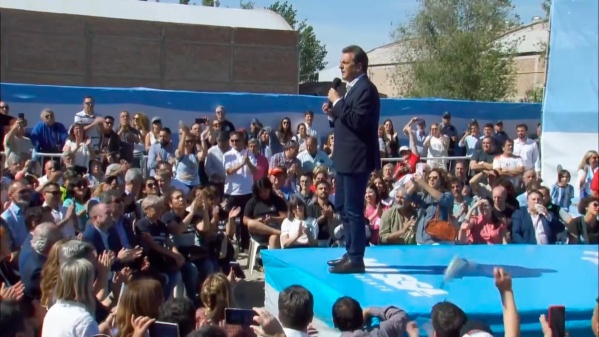 Como único orador del acto, el candidato oficialista llamó a "poner en agenda los valores de los consensos" y expresarse favorablemente sobre "la educación pública, las universidades públicas extendidas a lo largo del país, un Mercosur fuerte y a decirle 'nunca más' a la corrupción en Argentina", con una "agenda de transparencia" que ponga "en manos de la oposición" la Oficina Anticorrupción (OA), como había anunciado más temprano.
