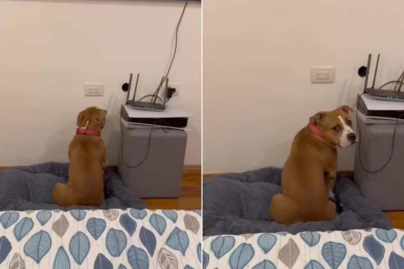 El breve clip muestra a la mascota sentada en el suelo, claramente molesta y mirando hacia la pared. La razón detrás de su descontento se revela más tarde: una nueva regla impuesta por sus dueños. Sin embargo, lo que podría haber sido simplemente un gesto de desaprobación se transforma en un acto encantador de inteligencia emocional canina.