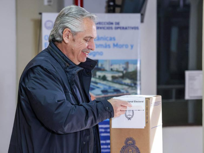 El presidente de la Nación, Alberto Fernández, emitió su voto en la Universidad Católica Argentina ubicada en la avenida Alicia Moreau de Justo al 1500, en la Ciudad Autónoma de Buenos Aires.