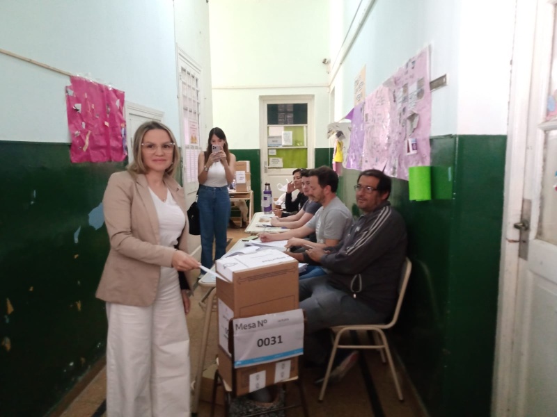 La diputada nacional de La Libertad Avanza, Carolina Píparo, votó esta mañana en la Escuela 10 situada en 16 y 48.