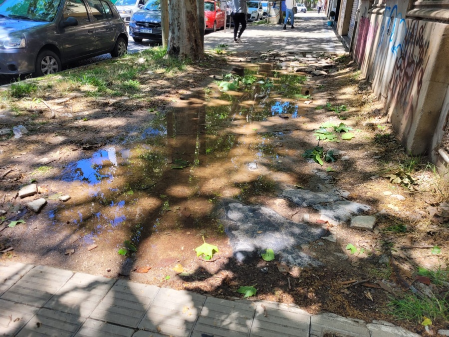 Los frentistas indicaron que ante la falta de baldosas y producto de las lluvias, se acumula un gran caudal de agua.