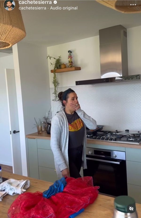 “Llegó”, escribió el actor en su video y contó que le latía el corazón y que no soportaba un minuto más de espera. En ese mismo instante, abrió la puerta del lugar donde estaba escondido y se adentró en la cocina de la casa.