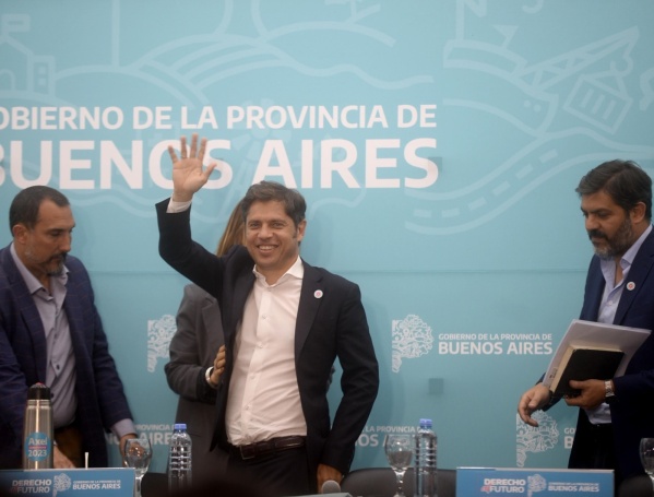 Kicillof, junto al jefe comunal de Rauch, Maximiliano Suescun, y de Balcarce, Esteban Reino, analizaron detalles del Presupuesto 2024, el futuro de la obra pública ante el anuncio de Milei de hacer recortes y algunas deudas que mantiene la Provincia con las comunas, como el IOMA, el IPS o el Fondo de Infraestructura Municipal.