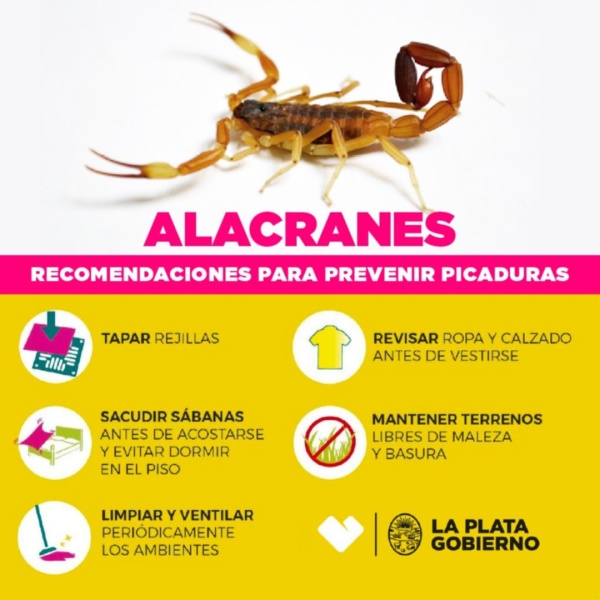 Ante la proximidad del verano y la consecuente llegada del calor, que propicia la aparición de alacranes, desde la Municipalidad de La Plata brindaron una serie de consejos a los vecinos para evitar picaduras.
