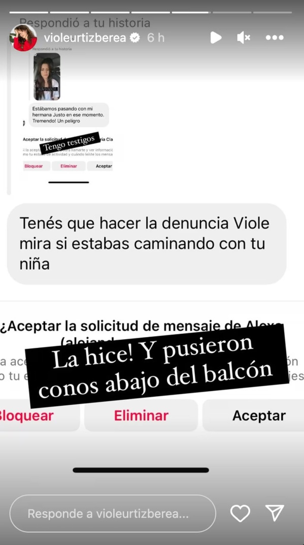 Por otro lado, la actriz aclaró que hizo la denuncia correspondiente y que en la vereda de ese balcón colocaron conos para alertar sobre los peligros de pasar por allí.