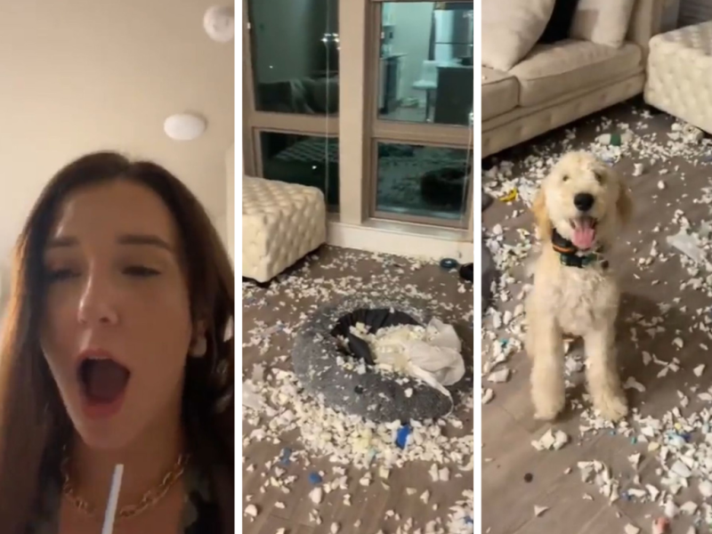 El usuario de la red social indicó “¿Vieron la carita del perrito? Ni como regañarlo”, luego de que se observaba al animal sumamente contento tras la destrucción de la almohada.