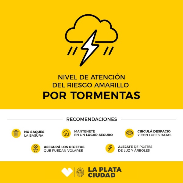 La Municipalidad de La Plata elevó el Nivel de Atención del Riesgo (NAR) a "Naranja" por tormentas pronosticadas para este viernes y dispuso tareas de prevención y monitoreo.