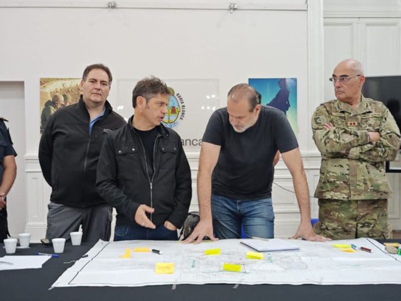 En ese sentido, Kicillof detalló que la Provincia desplegó más de 350 efectivos en la zona, tanto de la Policía como de los cuerpos de bomberos y Defensa Civil, especializados en el accionar ante emergencias. “Estamos acompañando al pueblo de Bahía Blanca no solo con asistencia para los evacuados, sino también con equipamiento pesado y liviano que trasladamos hacia la ciudad para poder llevar adelante el operativo de limpieza de calles y árboles caídos”, sostuvo.