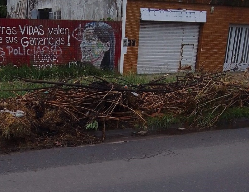 En 66 y 151, reclamaron por la falta de recolección de ramas y pastizales sobre la calle y la vereda, que obstruyen el drenaje del agua.