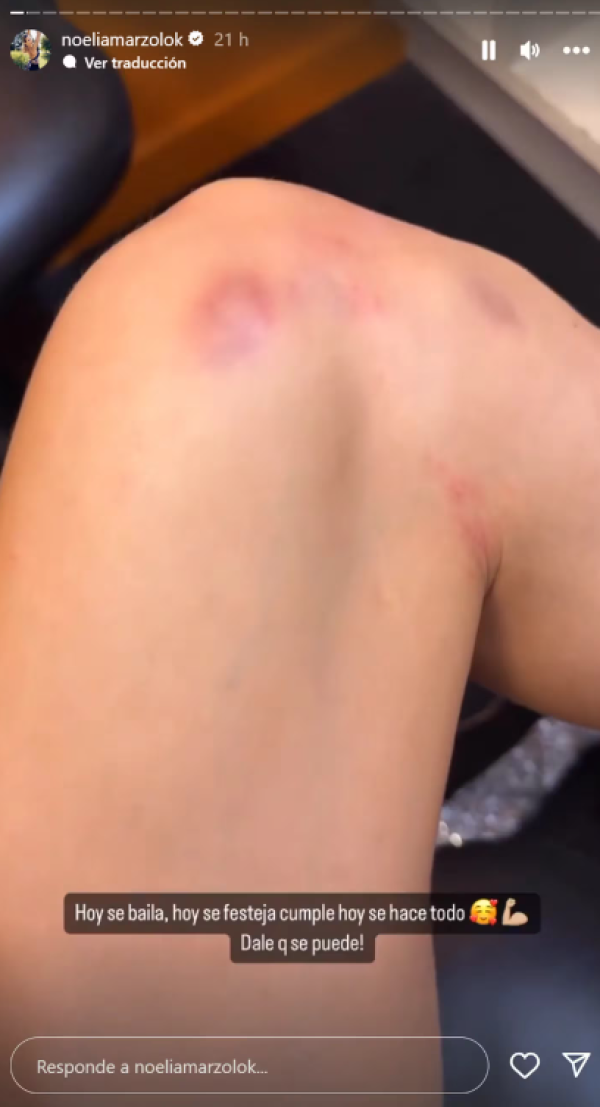 Antes de brillar en el programa, compartió una llamativa storie en Instagram para mostrarles a sus seguidores las consecuencias de su semana a pleno ensayo en el Bailando 2023. En las imágenes, se pueden ver tremendos moretones en sus extremidades, la consecuencia de, literalmente, haberlo dejado todo en cada truco.