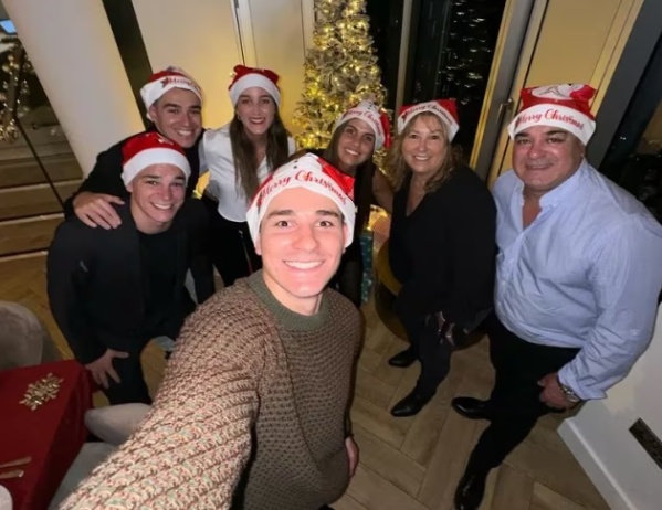 Al igual que sucedió con Dibu y Enzo, Julián Álvarez disfrutó de la Navidad con su familia y su novia Emilia Ferrero en Inglaterra. El que pasó por la misma situación fue Alexis Mac Allister, pero con el agregado que el 24 de diciembre también festejó su cumpleaños. El ex mediocampista de Argentinos Juniors y Boca celebró sus 25 años en compañía de parte de su familia y la de su actual pareja, Ailén Cova.