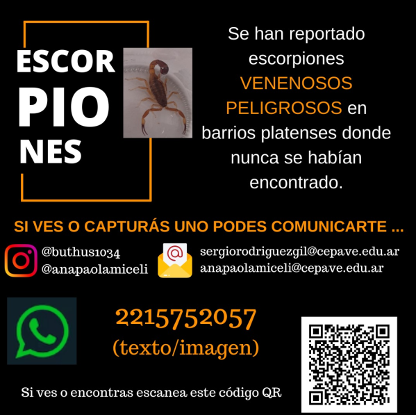 Así, Miceli le pidió a la población dirigirse a un hospital en caso de haber tomado contacto con un escorpión. También puso a disposición un teléfono por el cual retiran, en muchos casos, a los ejemplares localizados en casas: 2215752057.