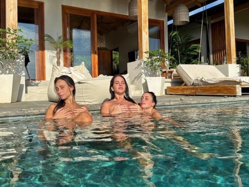 Las amigas de Tini se animaron al topless en la pileta privada, pero en la imagen no se ve si la cantante se sacó la parte de arriba de la bikini ya que prefirió preservar su intimidad.