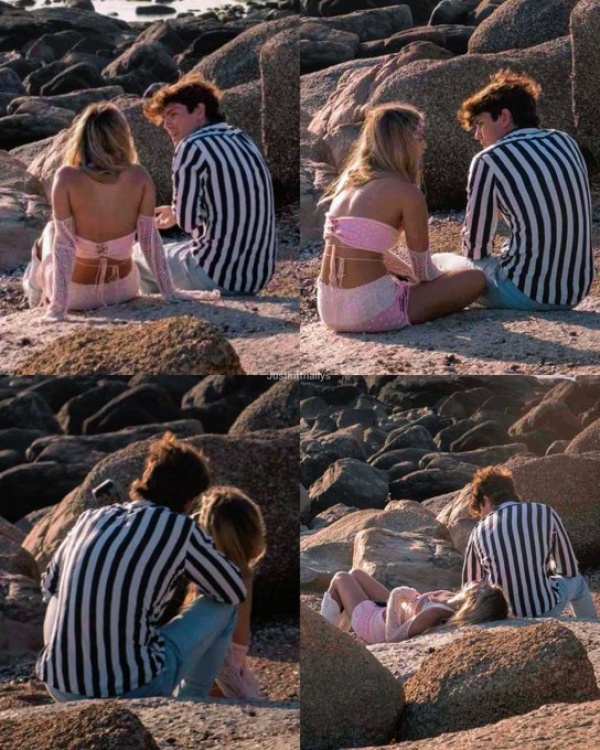 Julieta Poggio y Marcos Ginocchio se dirigieron entonces hacia la playa y, entre las piedras, encontraron el lugar perfecto para descansar y ponerse al día.
