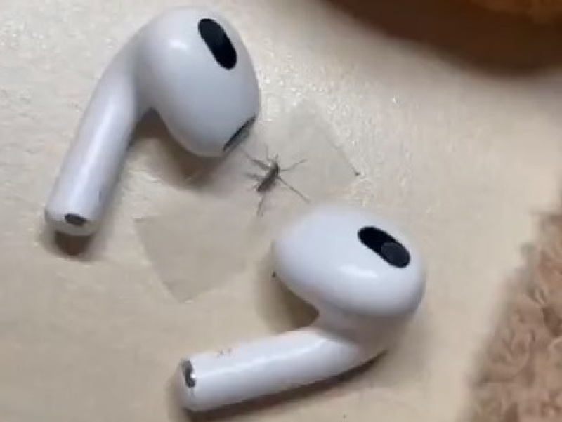 En el posteo, el usuario muestra al mosquito atrapado entre cinta scotch y estratégicamente colocado entre dos auriculares, siendo sometido a la experiencia sonora de la canción “Leche”, una colaboración de La Joaqui con Peipper y DJ Tao.