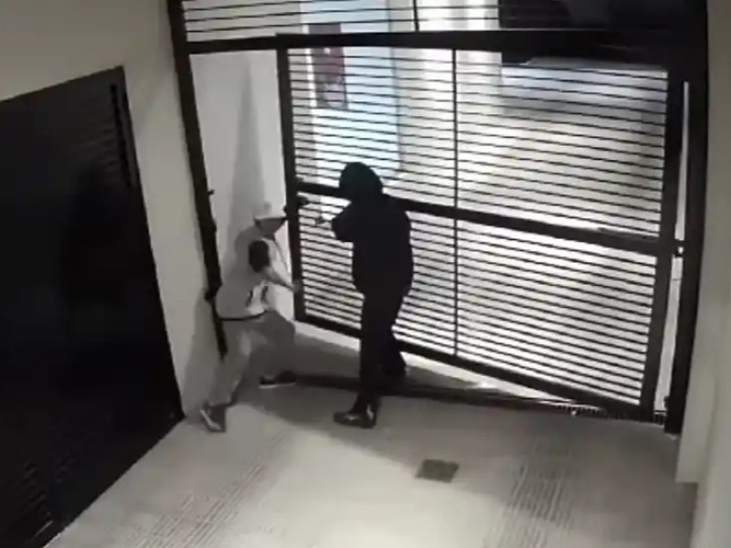 Toda la secuencia quedó registrada en las cámaras de seguridad privada pertenecientes al edificio. Luego de ver frustrado el robo, escaparon.